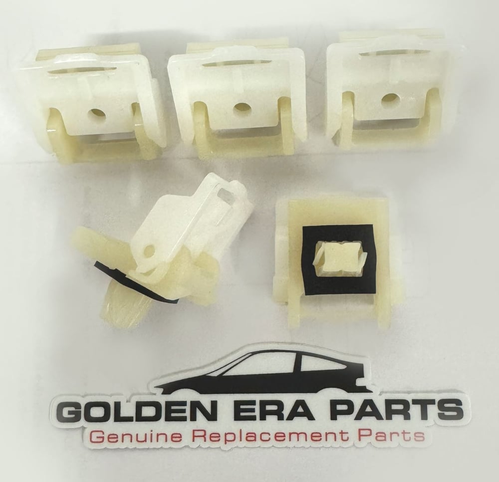 Includes complete set of 5x clips, with EPDM Rubber seal. Clips are two part, and the upper section may be removed and attached to original lower sections if you are not removing the rear glass as part of your restoration.