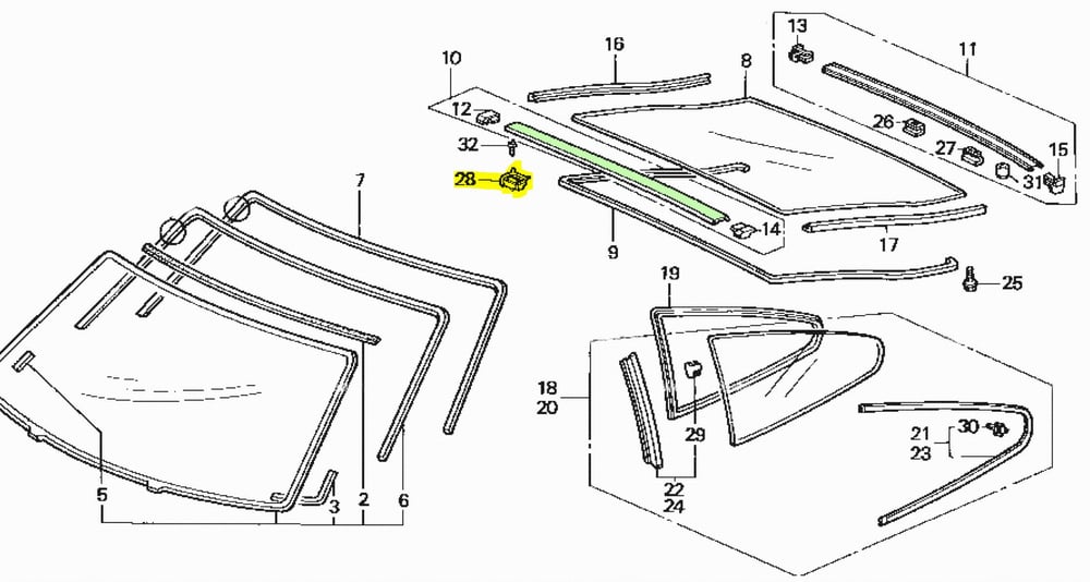 CLIP, RR. WINDSHIELD UPPER MOLDING