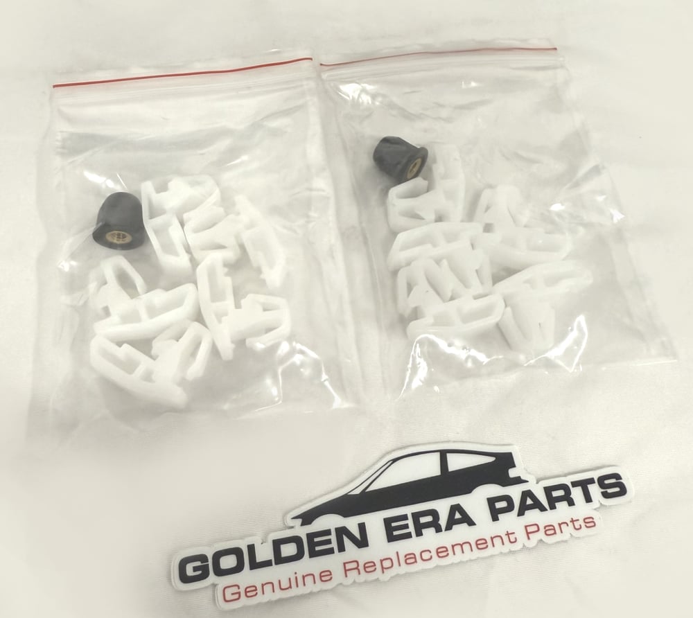 Includes two sets of 5x clips, plus the 10mm plastic end acorn nut, for both drivers and passenger side doors.